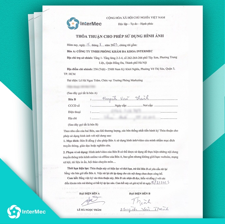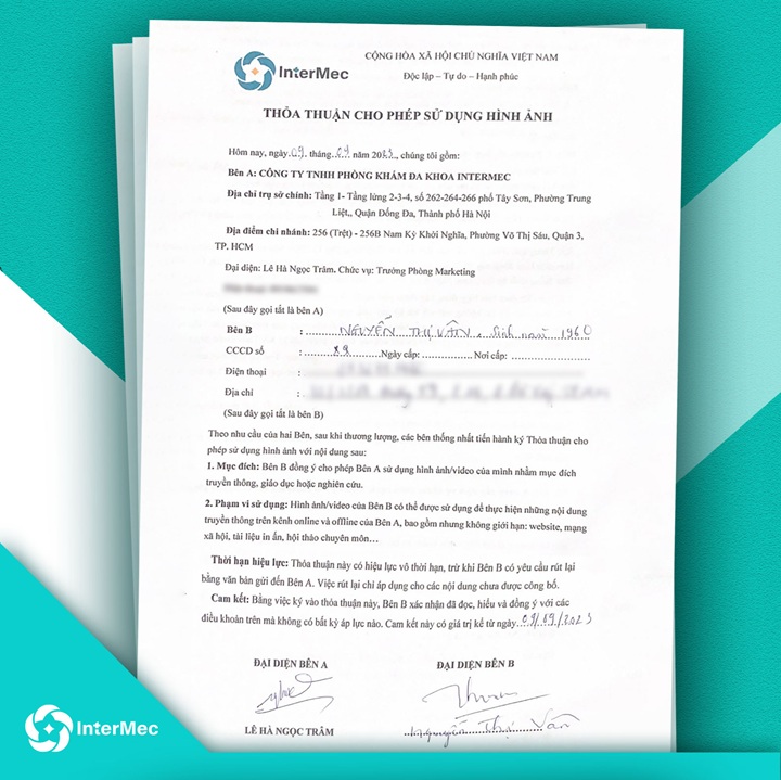 InterMec xin trân trọng thông báo: Tất cả hình ảnh và thông tin liên quan đến bệnh nhân trong quá trình điều trị tại phòng khám đều được sử dụng đúng quy định pháp luật, có sự đồng ý và cho phép chính thức từ chính bệnh nhân trước khi công bố. Chúng tôi luôn đảm bảo tuân thủ nghiêm ngặt các nguyên tắc về bảo mật thông tin cá nhân, quyền riêng tư và tôn trọng tuyệt đối đối với mỗi khách hàng khi sử dụng dịch vụ tại InterMec.